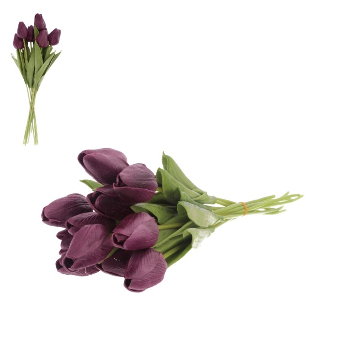 Kwiaty sprzedawane w bukietach po 12 sztuk tulipanów.