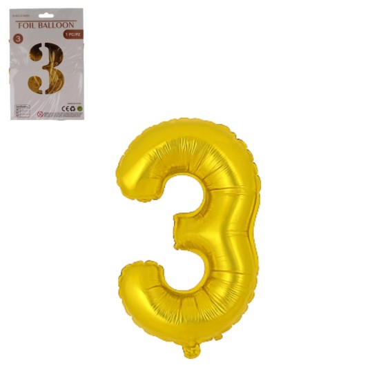 DEK/BALON FOLIOWY CYFRA 3 KOLOR ZŁOTY 32" (1/10)