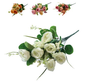 Kwiat sztuczny bukiet róże gał.10szt. dł.41cm.
