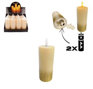 Świeca LED na baterie LR6/AA, z brokatem wys.13cm. śr.5cm