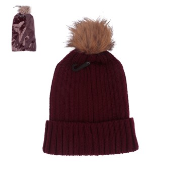 ODZ/CZAPKA ZIMO. DAMSKA Z POM. Długa Bordo(10)