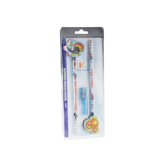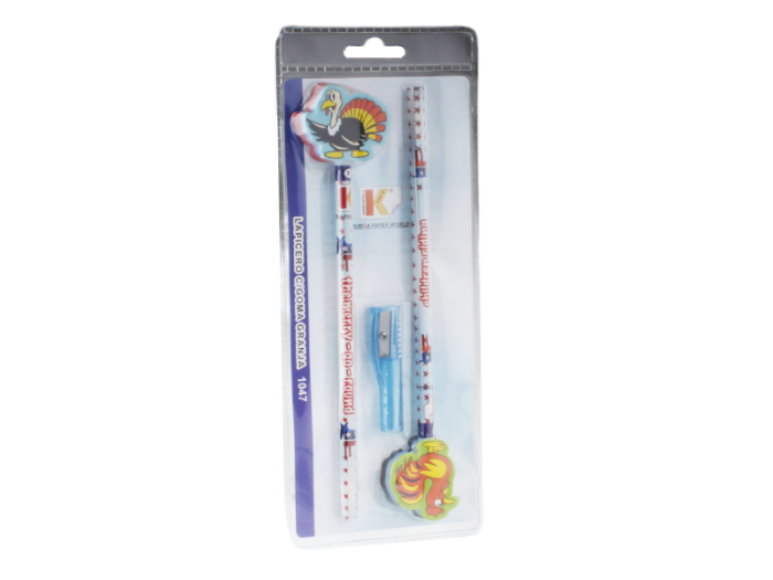 Ołówek z gumką kpl.2szt + ostrzałka, mix kolorów i wzorów