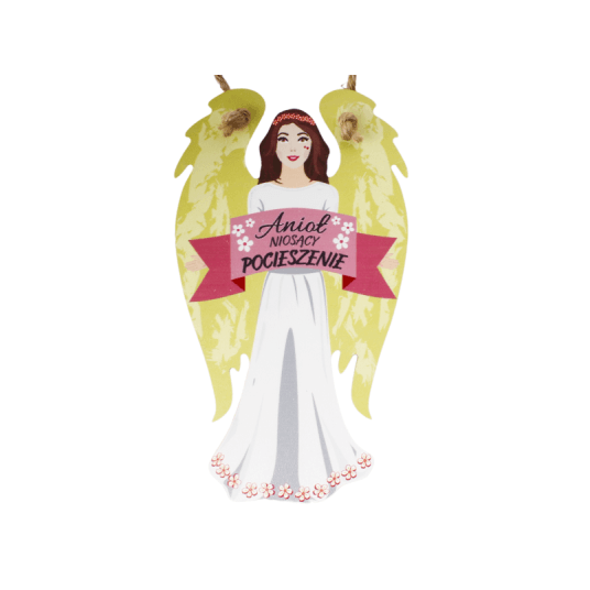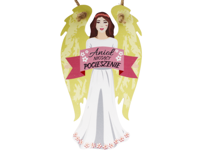 Anioł z drewna zwieszka wys.21cm. NIOSĄCY POCIESZNIE
