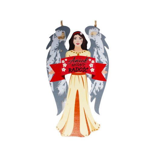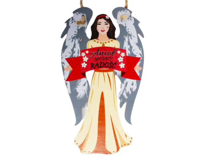 Anioł z drewna zawieszka wys.21cm. NIOSĄCY RADOŚĆ