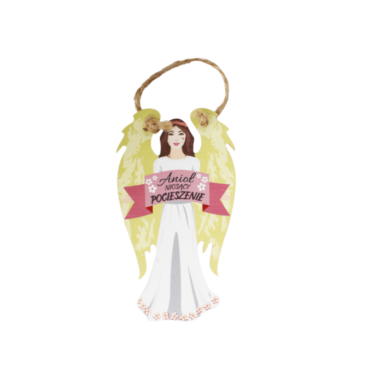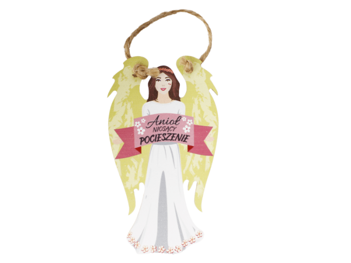 Anioł z drewna zwieszka wys.14,5cm. NIOSĄCY POCIESZENIE