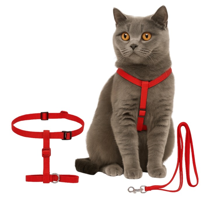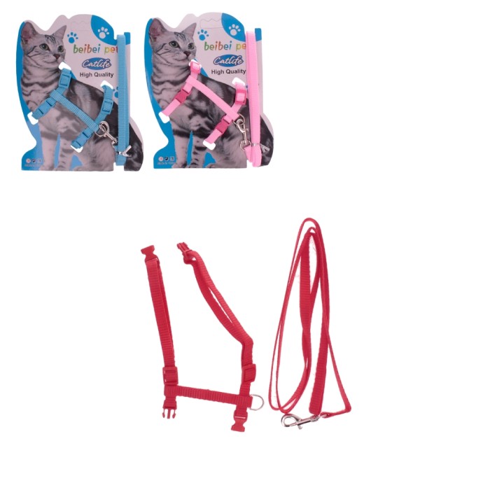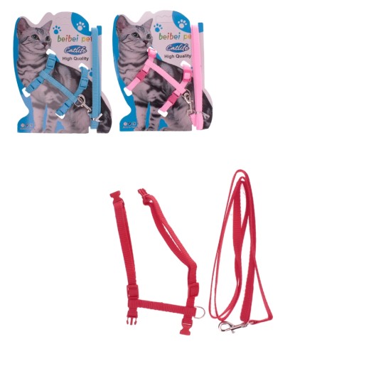 Zestaw smycz + szelki dla kota. Mix kolorów. Max dł.114cm