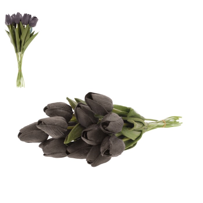 Kwiaty sprzedawane w bukietach po 12 sztuk tulipanów.