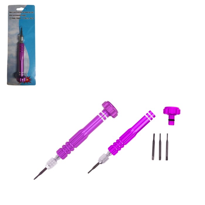 Śrubokręt precyzyjny do okularów, 4 wkłady dł.13cm, kolor fioletowy