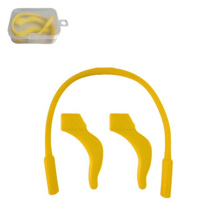 Pasek z silikonu do okularów + zausznik w etui dł.17x4 cm, kolor żółty