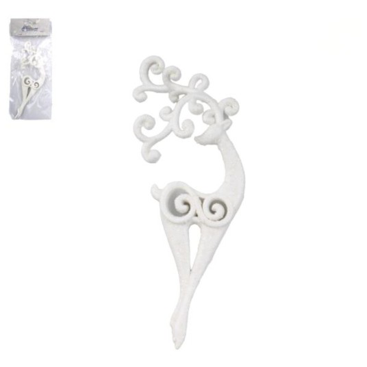 Renifer zawieszka biała z brokatem wys.18cm. *BR*