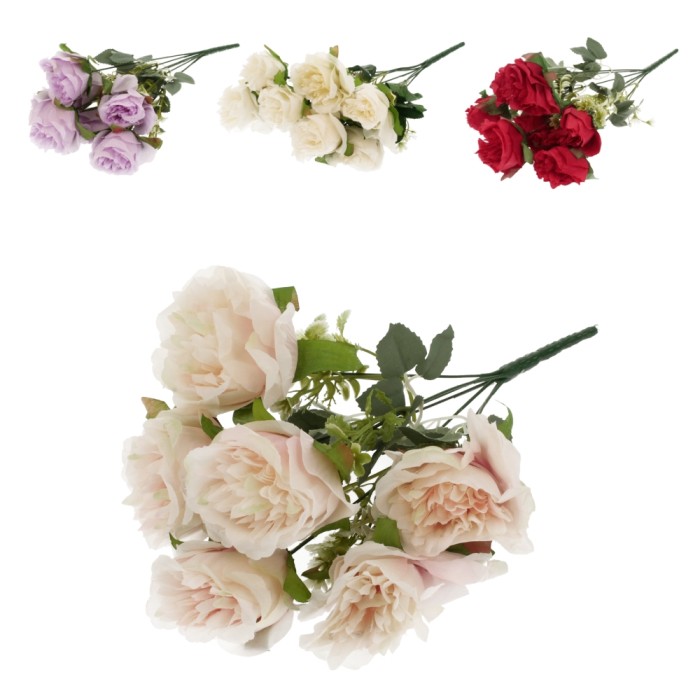 Kwiat sztuczny bukiet róża 7 kwiatów dł.43cm, MIX