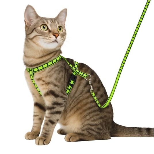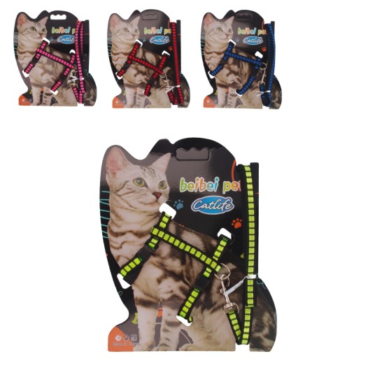 Smycz z obroża dla kota wzór odblask wym.1x120cm