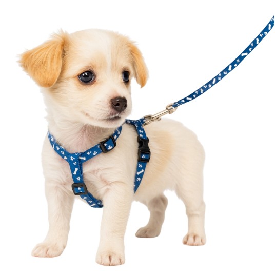 Smycz z obroża regulowana wzór Kość wym.1x120cm