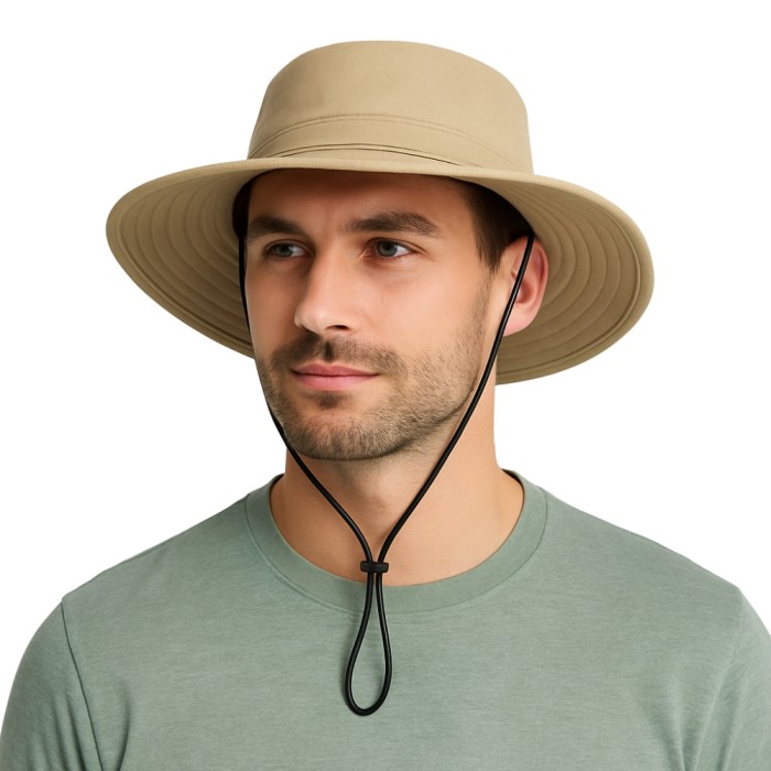 Kapelusz męski letni przeciwsłoneczny z regulacją. Kolor beżowy.