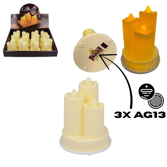 Świeca zasilana bateriami AG13x3szt. (dołączone w zestawie, gotowe do użycia)