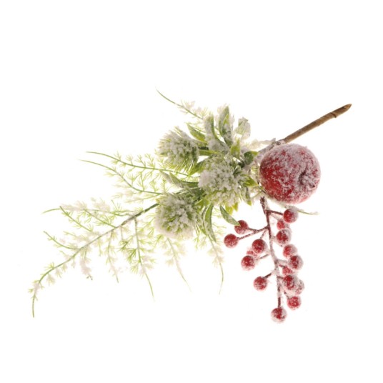 Gałązka ozdobna Bożonardzoenie z dodatkami szron dł.28cm.