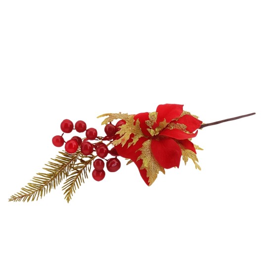 Gałązka z tw.szt. Gwiazda Betlejemska Czerwono-Złota z dodatkami dł.39cm. kwiat 12cm.