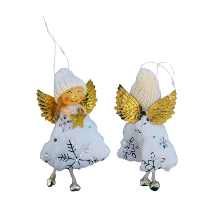 Zawieszka świąteczna z pluszu Aniołek z dzwonkiem wym.15x8cm