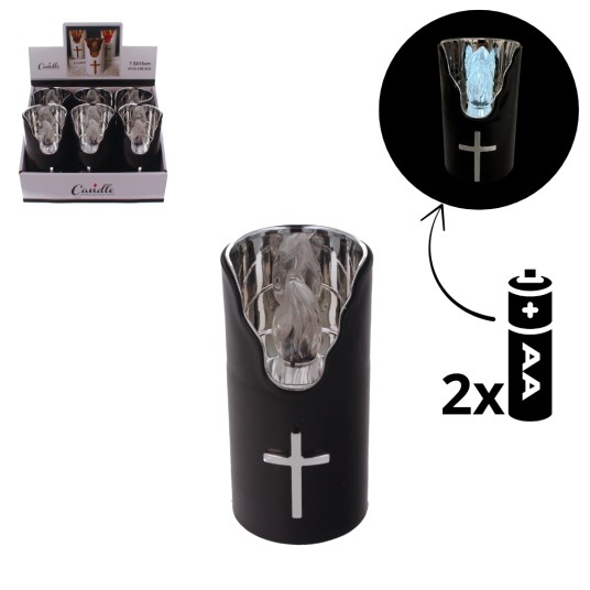 Znicz LED Czarny na baterie 2AA/ LR6 Biały Płomień. (Brak baterii w zestawie )