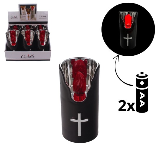 Znicz LED Czarny na baterie 2AA/ LR6 Czerwony Płomień. (Brak baterii w zestawie )