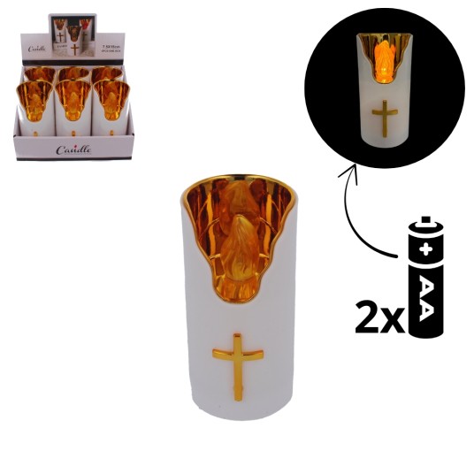 Znicz LED Biały na baterie 2AA/ LR6 Złoty Płomień. (Brak baterii w zestawie )