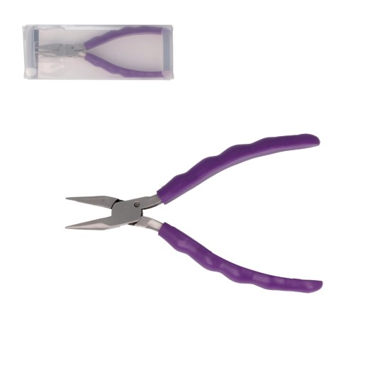 Cęgi płaskie z płaskimi szczękami, zaokrąglonymi na zewnątrz.