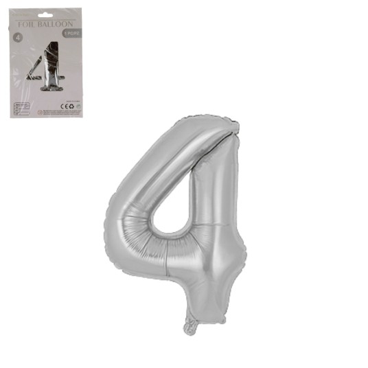DEK/BALON FOLIOWY CYFRA 4 KOLOR SREBRNY 32(1/1200)