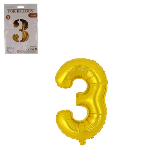 DEK/BALON FOLIOWY CYFRA 3 KOLOR ZŁOTY 16" (1/2400)