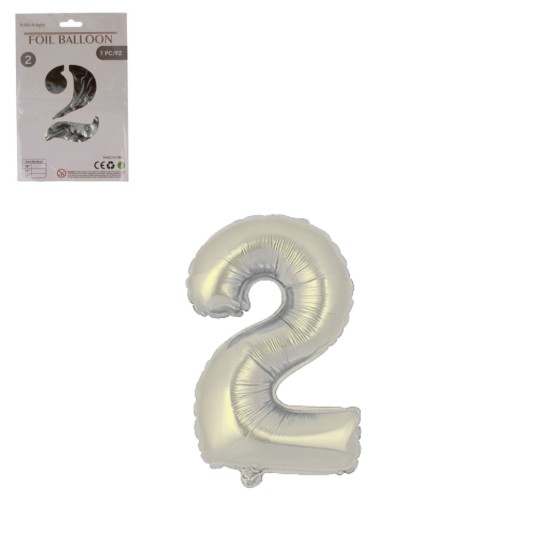 DEK/BALON FOLIOWY CYFRA 2 KOLOR SREBRNY 16 (1/10)