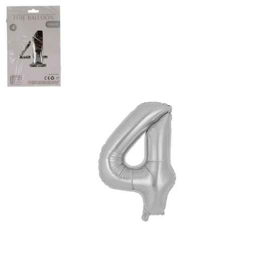 DEK/BALON FOLIOWY CYFRA 4 KOLOR SREBRNY 16 (1/10)