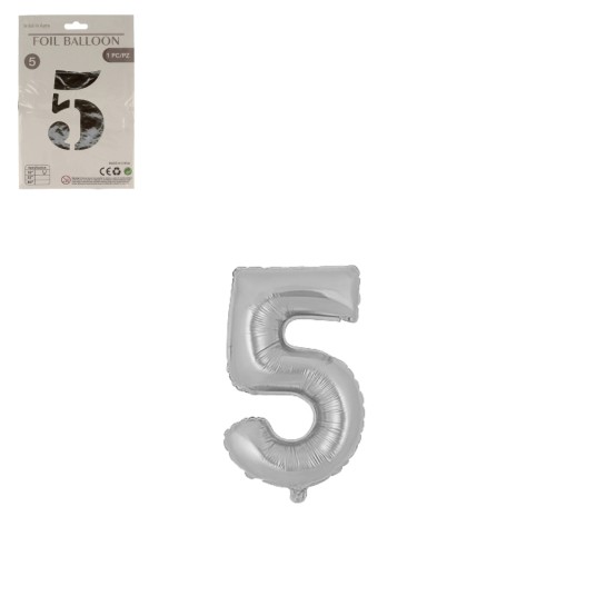 DEK/BALON FOLIOWY CYFRA 5 KOLOR SREBRNY 16 (1/10)