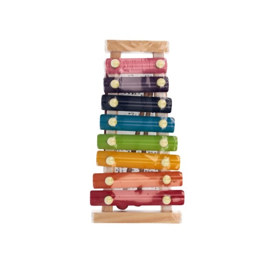 Zabawka cymbałki metalowe kolory tęczy + drewno