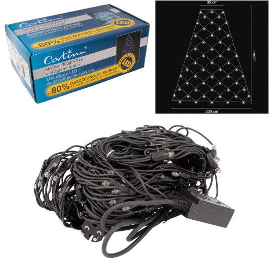 Oświetlenie dekor. Siatka Trójkątna 204 Dody LED barwa Ciepła Biała.