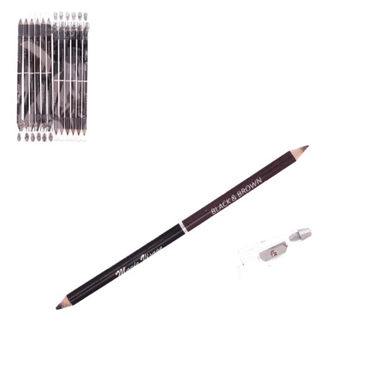 Kredka do brwi z temperówką 2 stronna kolor czarny/ brązowy waga1.2g